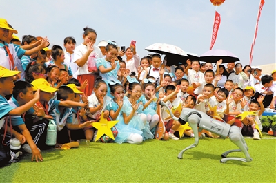 活动现场,工作人员将人工智能机器狗带入校园,瞬间吸引了学生们的目光。这只机器狗不仅能完成前进、后退、转身、跳跃等基础动作,还能在工作人员的指令下,做出舞蹈、翻滚等高难度动作,其灵活的姿态、智能的互动,引得在场学生发出阵阵惊叹与欢呼。
